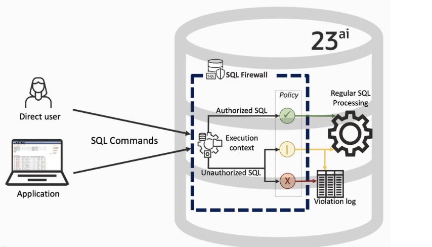 Oracle SQL Firewall offre une protection en temps réel contre les attaques courantes sur les bases de données en limitant l’accès à la base de données uniquement aux instructions SQL ou aux connexions autorisées pour un utilisateur désigné.